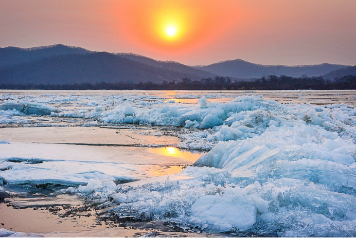 在烏蘇里江的源頭虎頭欣賞開(kāi)江壯景,別有一番風(fēng)味??傻巧蟻辛⒃诮系臇|方第一塔,遠(yuǎn)眺俄羅斯對(duì)岸,居高而下,欣賞烏蘇里江冰層炸裂、冰排涌動(dòng)的全景,聆聽(tīng)冰排漂流撞擊發(fā)出的陣陣聲響。