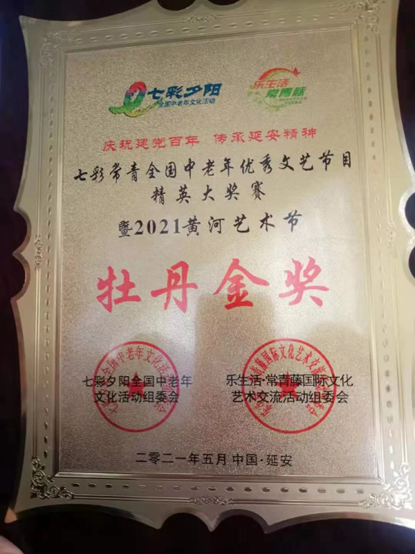 5月15日,塔河森林之聲合唱團應邀參加了全國老齡委在陜西延安舉辦的“慶祝建黨百年·傳承延安精神”全國中老年優(yōu)秀文藝節(jié)目精英大獎賽暨2021年黃河藝術節(jié),并榮獲牡丹金獎(最高獎項)和優(yōu)秀組織獎。