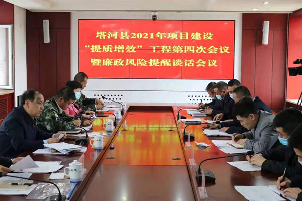 黑龍江經(jīng)濟網(wǎng)訊(王超 石佰龍 記者馬朝林)5月31日,塔河縣2021年項目建設(shè)“提質(zhì)增效”工程第四次會議暨廉政風險提醒談話會議在縣委四樓會議室召開,縣委書記林建軍、縣長宋波出席會議并講話,縣委常委、副縣長張躍科,副縣長劉淑艷、鄂旭杰、劉煜及項目、財經(jīng)相關(guān)單位負責人參加會議。