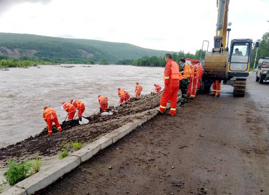 人與自然災害狹路相逢,面對洶涌的洪水、嚴峻的險情,呼中區(qū)委、區(qū)政府科學決策、準確研判、緊急部署,聯(lián)合呼中林業(yè)局、駐地森林消防隊伍,采取果斷措施,迅速組織機械人力,形成合力投入大搶險防災中來。