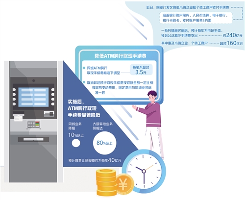 其中,降幅更大的是跨行異地ATM取現(xiàn)手續(xù)費。照此實施后,跨行同城ATM取現(xiàn)手續(xù)費降幅10%以上,跨行異地ATM取現(xiàn)手續(xù)費降幅80%以上。據初步測算,預計降費讓利規(guī)模約為每年40億元。