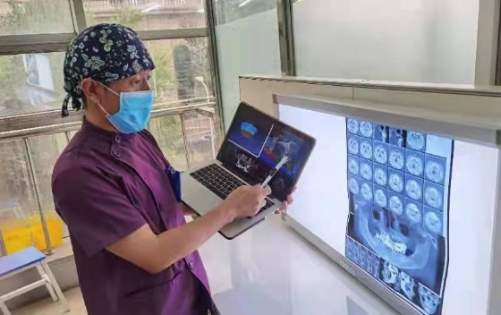 依托于“口腔北斗系統(tǒng)”新技術,劉鑫教授團隊在數(shù)字化口腔種植領域精耕細作,迄今已圓滿完成了上百例數(shù)字化種植牙手術。與傳統(tǒng)“自由手”口腔種植技術相比,數(shù)字化口腔種植手術更加安全、精準、微創(chuàng)、高效、舒適。同時,個性化的手術設計方案借助數(shù)字化的直觀、立體形式呈現(xiàn)在患者面前,便于醫(yī)患間直接面對面交流,既提升了種植手術的精確度和成功率,又節(jié)約了手術時間,減少了手術創(chuàng)傷,降低了術后并發(fā)癥。