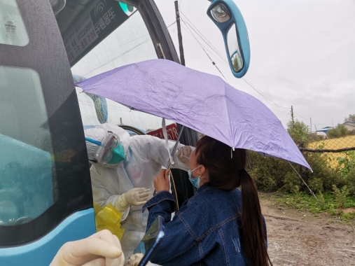省醫(yī)院南崗院區(qū)中心手術(shù)室護士趙明裕,中秋節(jié)當(dāng)天下午正在家中給八歲的大女兒過生日,接到通知需要支援巴彥縣核酸采集,親了親身邊的大女兒和四歲的小女兒,立即驅(qū)車前往醫(yī)院。到達(dá)巴彥后,趙明裕被分到后山鄉(xiāng),三人小組同組另兩位隊員都是年過40歲的大姐,已經(jīng)是預(yù)備黨員的趙明裕想想自己年輕一定要多干些,主動請纓承擔(dān)了更多的工作。當(dāng)天,三人共完成了五個村屯近600人的采集,外面陰雨綿綿,氣溫驟降,手消涂在手套上,全手掌冰涼的感覺讓趙明裕本就著裝不多的身體愈發(fā)冰冷,但想到臨行前醫(yī)院同事一次次的叮嚀與囑托,她心中堅信,抗疫必勝。同時當(dāng)?shù)卮迕竦臒崆橐沧屭w明裕的心里暖暖的,后山鄉(xiāng)政府的工作人員和人民群眾都非常積極的配合,尤其是老人和小孩,并沒有由于天氣陰雨綿綿的原因而不配合,都在鄉(xiāng)領(lǐng)導(dǎo)的指揮下,井然有序的配合著。