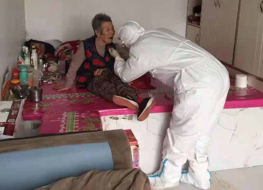 巴彥縣核酸采集現(xiàn)場還活躍著省醫(yī)院健康管理中心疾病康復(fù)部工作人員的身影,護士長李曉莉率先垂范,發(fā)揮黨員先鋒模范作用,帶隊“出征”;隊員徐賢紅克服低血鉀、全身無力等困難,積極參戰(zhàn);隊員林虹則空腹血糖達(dá)10mmol/L,帶著胰島素請求“參戰(zhàn)”。三人早晨7點開始核酸采集工作,深入到各個鄉(xiāng)鎮(zhèn)村屯,更將核酸采集工作延伸到老鄉(xiāng)家中,為臥床及行動不便的人進行核酸采集工作,中飯和晚飯都是快速的吃一口盒飯或者泡面就地解決,然后又迅速投入到工作中。據(jù)了解,疾病康復(fù)部人均年齡都在50歲左右,此次抗疫所有的同事都克服自身重重困難,為完成使命,勇往直前,盡顯龍醫(yī)人的本色。