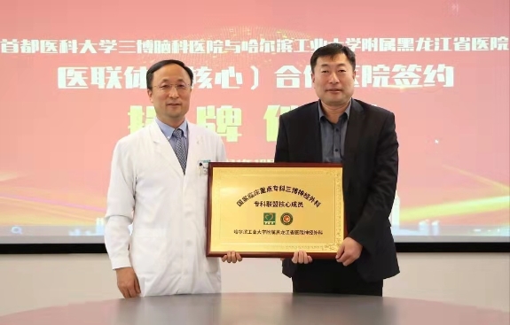 黑龍江經(jīng)濟網(wǎng)訊(林穎 董宇翔 梁新立) 10月19日,黑龍江省醫(yī)院與首都醫(yī)科大學(xué)三博腦科醫(yī)院結(jié)成醫(yī)聯(lián)體簽約揭牌儀式在北京舉行。今后雙方將在遠程會診、技術(shù)指導(dǎo)與支持、人才培養(yǎng)和資源共享等多方面開展緊密合作,攜手共進,優(yōu)勢互補,共同提高在神經(jīng)科學(xué)領(lǐng)域臨床、科研及教學(xué)水平,提升醫(yī)療服務(wù)能力,切實為黑龍江省及周邊地區(qū)百姓提供優(yōu)質(zhì)的醫(yī)療衛(wèi)生服務(wù)。