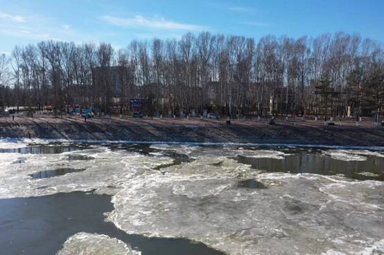 第二次是在10月末11月初開始出現(xiàn)冰情,整個冰封的過程,從最初江水推著冰絮、冰塊、冰排流動,大塊大塊的冰塊順江而下,會發(fā)出咔咔的碰撞聲。隨著氣溫的逐漸降低,冰排會越凍越大,冰層也會越積越深,直至整個江面全面封凍。冬季流冰期與春季流冰期相比,流速相對緩慢,黑龍江呼瑪段整個冰凍的過程會持續(xù)20余天。今年冬季流冰期與去年相比,時間持平。