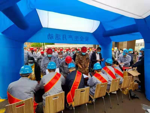 利用“安全生產(chǎn)月”和“安全生產(chǎn)龍江行”活動開展之機,組織安全生產(chǎn)月主題宣傳、學規(guī)程贏獎品、主題演講比賽、為安全生產(chǎn)獻計獻策活動、直擊現(xiàn)場應急處置知識抽查、安全事故警示片觀看、應急救援和CPR救護比武、300平燒結作業(yè)區(qū)皮帶著火事故應急演練、二級主管公開課、安全知識競賽等11個安全活動,制作板報49塊、標語84個、橫幅55條、彩虹門3個、景觀4處、展板、彩旗、飄旗等宣傳用品,讓濃濃的安全教育氛圍時刻影響著每名員工。