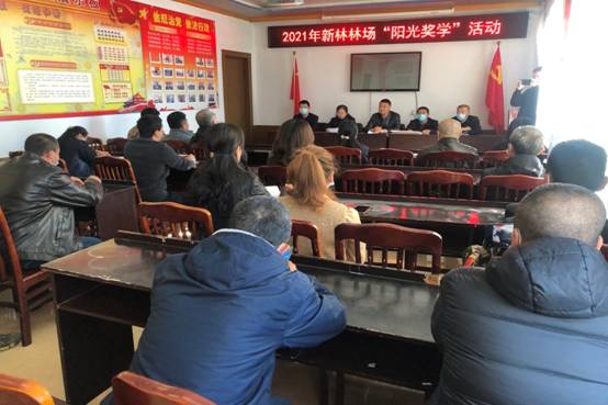 圖為新林林場班子成員為職工發(fā)放陽光獎學(xué)金(楊光 攝)