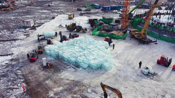 三萬(wàn)立方米存冰到位 哈爾濱冰雪大世界火熱施工中