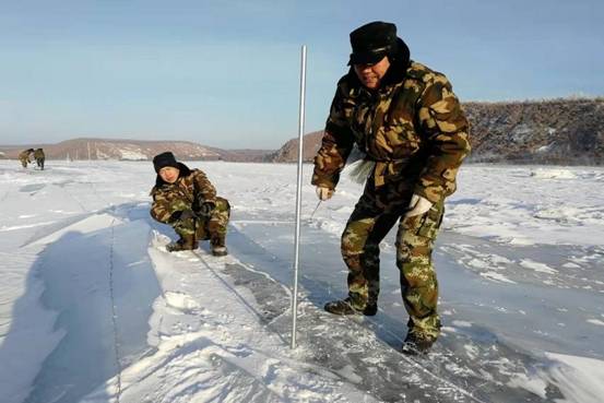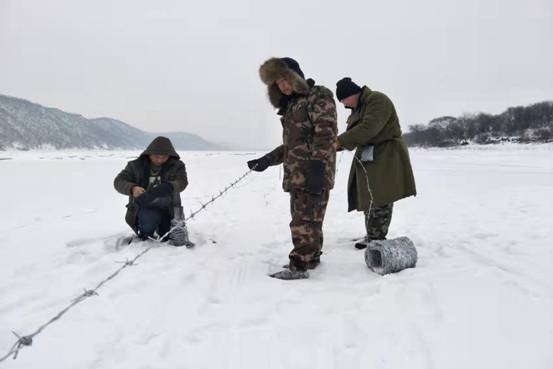 為進(jìn)一步做好防境外疫情輸入工作,最大限度的保護(hù)好人民群眾的生命健康安全,當(dāng)?shù)卣疀Q定在界江沿線(xiàn)架設(shè)防疫隔離墻,阻擋境外物種帶入病毒。紅星林場(chǎng)在接到任務(wù)后,迅速組織人力物力投入戰(zhàn)斗。冰封的江面在冬季暗藏危機(jī),看似一平如鏡的冰下有很多封凍時(shí)形成的漏斗,白雪覆蓋下的區(qū)域更是潛藏著無(wú)數(shù)的冰縫,一腳踏進(jìn)去就會(huì)造成嚴(yán)重的扭傷,而在冰面上放線(xiàn)拉網(wǎng)需要每天抬著幾十斤的鐵蒺藜線(xiàn)軸往返十幾里路程,行進(jìn)在冰面路段上一步一滑,加固鐵線(xiàn)時(shí)還要時(shí)刻小心不被鐵蒺藜劃傷,鉆孔、插樁也要時(shí)刻防止產(chǎn)生大面積的冰裂。