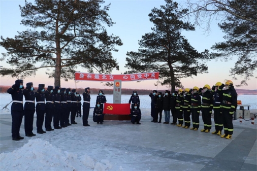 呼瑪縣素有紅色邊疆的美譽,共建聯(lián)盟前往呼瑪縣江邊第173號界碑,在莊嚴的黨旗和界碑下,呼瑪縣森林消防大隊黨委書記苗亮亮帶領全體黨員同志重溫了入黨誓詞,舉行集體宣誓儀式,旨在進一步強化廣大應急人的政治意識,增強黨性觀念,筑牢政治忠誠,永葆紅色氣質(zhì)。