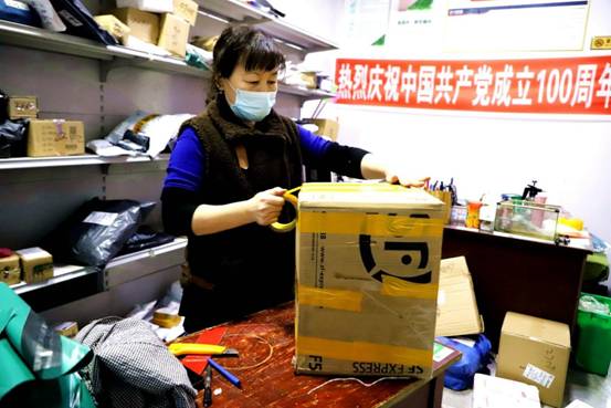 申通經(jīng)營業(yè)主劉桂霞為客戶打包山特產(chǎn)品,發(fā)往全國各地。