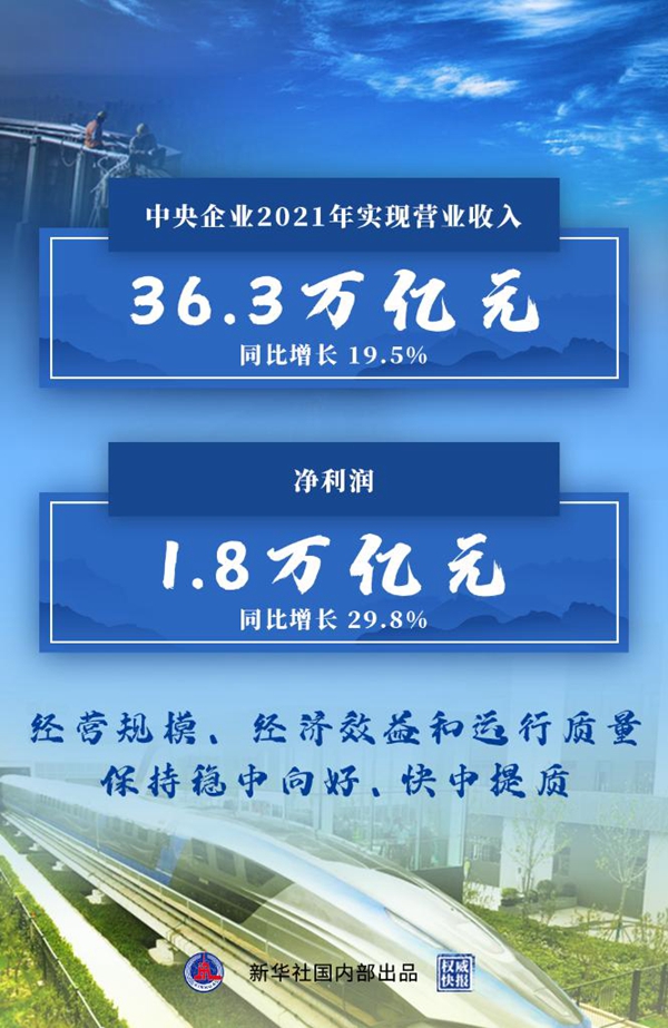 新華社北京1月19日電(記者王希)中央企業(yè)2021年經(jīng)濟(jì)運(yùn)行成績單19日“出爐”:全年實(shí)現(xiàn)營業(yè)收入36.3萬億元,同比增長19.5%,兩年平均增長8.2%;實(shí)現(xiàn)利潤總額2.4萬億元、凈利潤1.8萬億元,分別同比增長30.3%、29.8%,兩年平均增速分別為14.5%、15.3%。