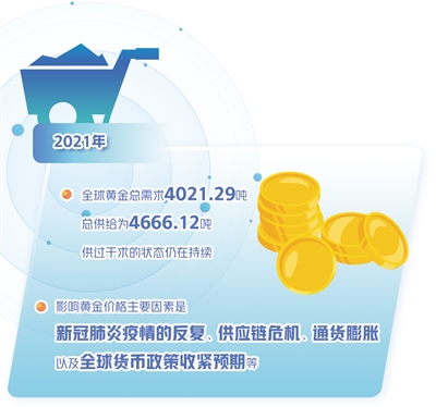 方正中期期貨有限公司貴金屬研究員史家亮認(rèn)為,2021年,全球黃金總需求4021.29噸,總供給為4666.12噸,供過于求的狀態(tài)仍在持續(xù)。不過,黃金價(jià)格并沒有持續(xù)大幅回落,主因在于黃金的商品屬性對價(jià)格的影響仍在弱化,黃金的債券屬性和貨幣屬性是黃金價(jià)格走勢的核心影響因素,而這又與美聯(lián)儲(chǔ)貨幣政策走勢密切相關(guān)。