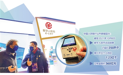 2017年起,人民銀行與商業(yè)銀行、互聯(lián)網(wǎng)公司等合作,共同進(jìn)行數(shù)字人民幣研發(fā)。2019年末,數(shù)字人民幣開始試點(diǎn),目前,人民銀行已經(jīng)在深圳、蘇州、雄安、成都、上海、海南、長(zhǎng)沙、西安、青島、大連等地和2022年北京冬奧會(huì)場(chǎng)景開展數(shù)字人民幣試點(diǎn)。中國(guó)人民銀行公布的數(shù)據(jù)顯示,截至2021年10月8日,數(shù)字人民幣試點(diǎn)場(chǎng)景已超過(guò)350萬(wàn)個(gè),累計(jì)開立個(gè)人錢包1.23億個(gè),交易金額約560億元。