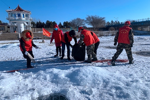 活動中,森調(diào)隊15名志愿者們身著志愿者紅馬甲,手拎垃圾袋,走在濕地兩側(cè)一邊互相提醒,一邊認(rèn)真地撿拾游客丟棄在濕地周邊的礦泉水瓶、煙蒂、碎紙屑、塑料袋等生活垃圾。由于氣溫轉(zhuǎn)暖,冰面濕滑,給清理垃圾工作帶來一定難度,志愿者們克服困難,利用一個多小時的時間,還濕地周邊一片干凈、整潔的環(huán)境。