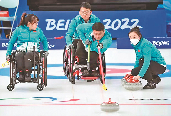 北京冬殘奧會(huì)的第一天,中國(guó)輪椅冰壺隊(duì)開局不利,先后不敵加拿大隊(duì)和瑞典隊(duì),壓力可想而知。之后中國(guó)隊(duì)迅速調(diào)整狀態(tài)。6日,9:3戰(zhàn)勝愛沙尼亞隊(duì),贏得循環(huán)賽首勝。7日,接連戰(zhàn)勝韓國(guó)隊(duì)和瑞士隊(duì),以三勝兩負(fù)的戰(zhàn)績(jī)與拉脫維亞隊(duì)并列第三名。11日,中國(guó)隊(duì)對(duì)陣加拿大隊(duì)爭(zhēng)奪決賽名額。12日,輪椅冰壺決賽中,中國(guó)隊(duì)在前四局1:2落后瑞典隊(duì)的情況下改變戰(zhàn)術(shù),利用對(duì)手失誤成功拿到4分。最終,中國(guó)輪椅冰壺隊(duì)8:3戰(zhàn)勝瑞典奪得冠軍。