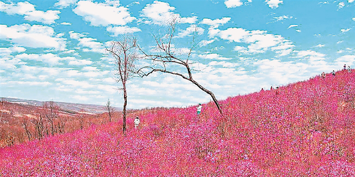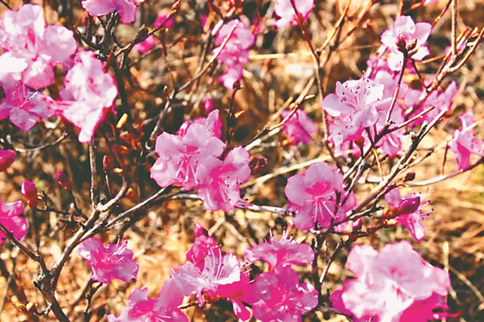 興安杜鵑有很多動聽的名字,達(dá)子香、滿山紅、映山紅等,朝鮮族叫它“金達(dá)萊”,野生興安杜鵑被列為國家重點(diǎn)保護(hù)二級野生植物。一簇簇,一片片,艷如桃李、燦若云霞、熱情似火、暗香四溢,游覽采風(fēng)的人們紛至沓來。