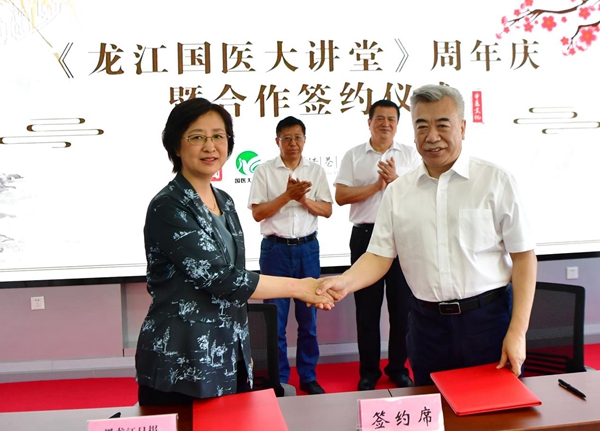 活動(dòng)現(xiàn)場(chǎng),黑龍江日?qǐng)?bào)報(bào)業(yè)集團(tuán)分別與黑龍江省中醫(yī)藥管理局、黑龍江省中醫(yī)藥科學(xué)院進(jìn)行了合作簽約。省中醫(yī)藥管理局黨組書記、局長(zhǎng)張曉峰說:黑龍江日?qǐng)?bào)報(bào)業(yè)集團(tuán)具有廣泛的社會(huì)影響力,我們將以框架協(xié)議的簽署為契機(jī),在中醫(yī)藥文化知識(shí)宣傳普及、中醫(yī)藥產(chǎn)業(yè)宣傳推介方面進(jìn)一步加深合作。省中醫(yī)藥科學(xué)院黨委書記、院長(zhǎng)陳宏在現(xiàn)場(chǎng)說:《龍江國醫(yī)大講堂》已成為我省中醫(yī)藥文化宣傳戰(zhàn)線上的知名品牌,我們將在多領(lǐng)域開展更深層次、更高水平的合作,為我省中醫(yī)藥事業(yè)跨越式發(fā)展助推加力。
