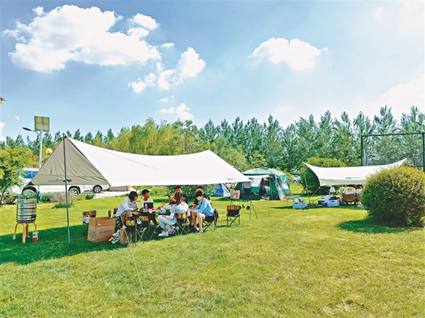 “下午微微的陽光,到夜幕低垂時的晚霞,遠離平日的吵鬧,滿足生活里的小愜意?!惫枮I市民王琪雨在自己的朋友圈中記錄著自己最近一次露營時的好心情。今年夏天,幾乎每個周末她都選擇帶著家人到哈爾濱周邊的露營地度過?!霸谔炷幌?,大人聚在一起吃著燒烤把酒言歡,孩子們在水渠旁玩著水槍與沙子,在家門口就能感受‘詩和遠方’,城市壓力被遠遠甩開,剩下的只有新鮮感,這種感覺很解壓。”