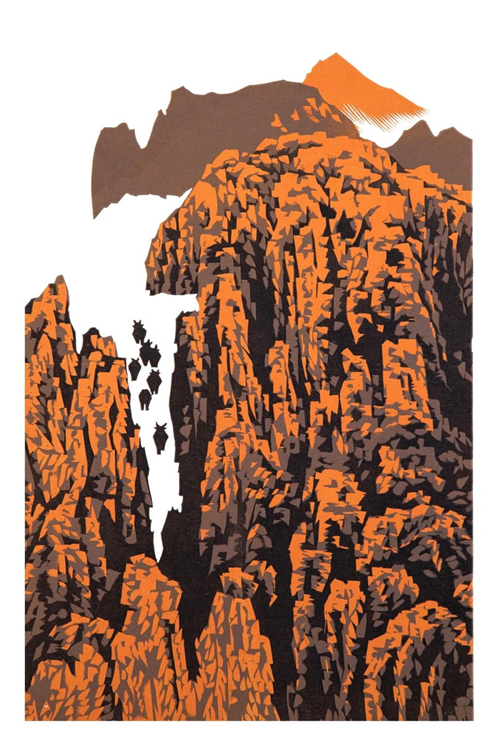 家山競(jìng)秀之二 木版 47×30cm 2020年