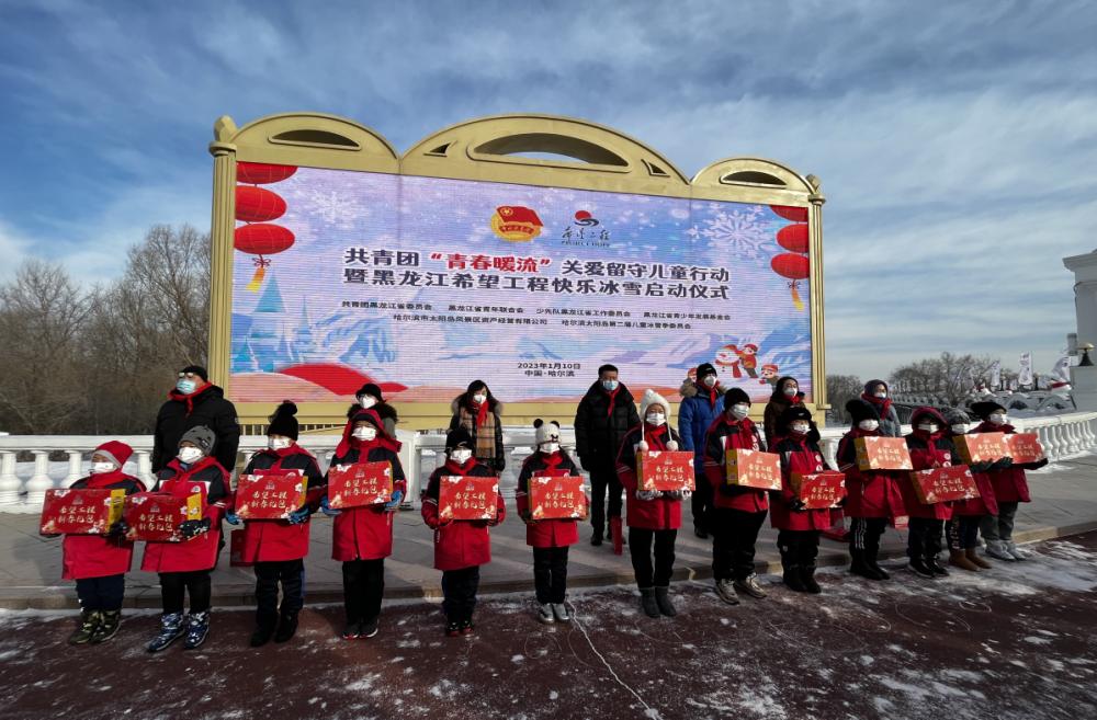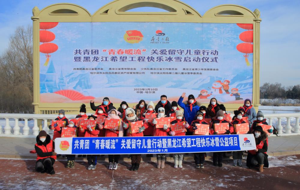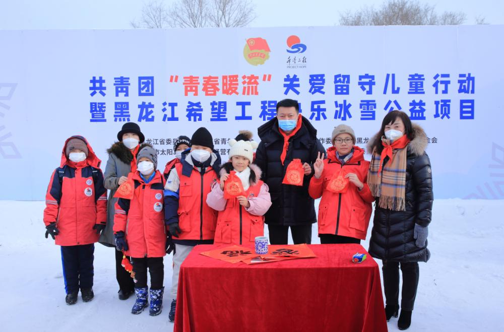 黑龍江經濟網訊(于佳弘 記者祝東)1月10日上午,共青團“青春暖流”關愛留守兒童行動暨黑龍江希望工程快樂冰雪公益項目啟動儀式在哈爾濱太陽島國際雪博會舉行?;顒佑晒睬鄨F黑龍江省委員會指導,由黑龍江省青年聯(lián)合會、少先隊黑龍江省工作委員會、黑龍江省青少年發(fā)展基金會聯(lián)合舉辦,并得到了太陽島風景區(qū)資產經營有限公司、哈爾濱太陽島第二屆兒童冰雪季組委會、哈爾濱市松北前進小學校的大力支持。共青團黑龍江省委副書記夏天、哈爾濱市太陽島風景區(qū)資產有限公司黨委書記、董事長趙經濤和黑龍江省青聯(lián)、黑龍江省少工委、黑龍江省青基會以及來自哈爾濱市松北區(qū)前進小學的留守兒童和黑龍江大學的留學生,共70余人參與了活動。