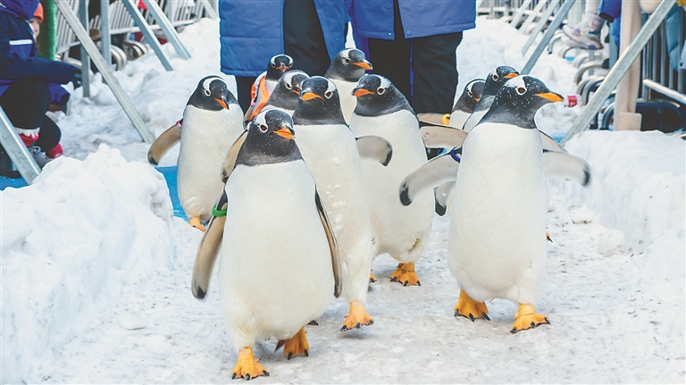 “我們就是專程為‘淘學(xué)企鵝’而來,能在哈爾濱看到全國(guó)僅有的企鵝冰雪巡游,真的不虛此行。”早在1年前,上海游客孟蕓就通過短視頻看到它們背著小書包打卡黑龍江美景的身影,成為妥妥的“鵝粉”。她說,為了能在前排近距離觀看,她更是早早就來到極地廣場(chǎng)等候。哈爾濱極地公園營(yíng)銷部經(jīng)理崔美艷說,“淘學(xué)企鵝冰雪巡游”自啟動(dòng)以來,每日引萬人打卡,成為今冬的爆款網(wǎng)紅活動(dòng),吸引全國(guó)游客來到哈爾濱看企鵝打卡拍攝,全網(wǎng)曝光量更是在25天的時(shí)間里突破了8.5億。