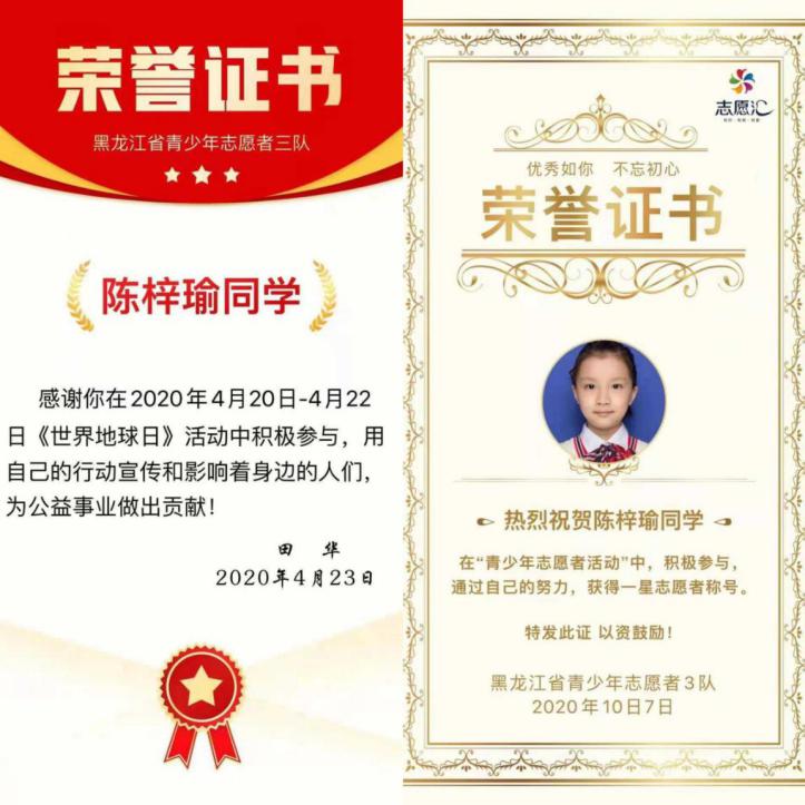 陳梓瑜同學(xué)熱衷于志愿服務(wù)活動(dòng)。連續(xù)三期參與了為貧困小學(xué)捐書(shū)志愿活動(dòng)、“美化井蓋·建文明城市”系列志愿服務(wù)、積極參與“雛雁計(jì)劃助學(xué)活動(dòng)”,她積極組織策劃了 “小小圖書(shū)管理員·你我共建”志愿活動(dòng)、“垃圾分類小衛(wèi)士”志愿活動(dòng)、幫助哈爾濱市公安局推廣“防詐騙軟件志愿活動(dòng)”。