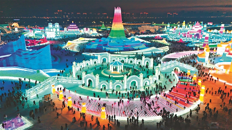 “震撼,刺激!”采訪過程中,不少游客這樣總結(jié)冰雪大世界之行。因為美景而感到震撼,乘坐521米超長大滑梯體驗到風(fēng)馳電掣的刺激……這個冰雪季,以“龍騰冰雪 逐夢亞冬”為主題的第二十五屆哈爾濱冰雪大世界為八方游客準備了一場集沉浸體驗、旅游觀光、賞冰樂雪為一體的冰雪盛宴,這必定是一段令人難忘的冰雪旅程。