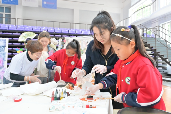 “扎”一束時光,“染”七彩童年。在弘揚中華民族優(yōu)秀傳統(tǒng)文化的同時,讓孩子們感受非遺之美、勞動之趣,體驗了一場別具一格的扎染之旅。