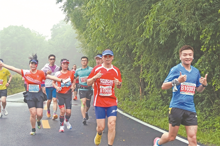 隨著發(fā)令槍響,7380名選手陸續(xù)沖出起跑線,從老山門出發(fā),途經(jīng)神龜石、月牙湖、長(zhǎng)壽泉、丞相峰,遠(yuǎn)眺南極仙翁,沿途領(lǐng)略北國森林的壯美風(fēng)光,碧樹藍(lán)天相映成趣,盡顯生態(tài)魅力。賽道上,有沖鋒在前的資深跑者,有不甘落后的新人跑者,更有“以跑為樂”運(yùn)動(dòng)團(tuán)體,以鏗鏘步履跑出一道道靚麗風(fēng)景線。