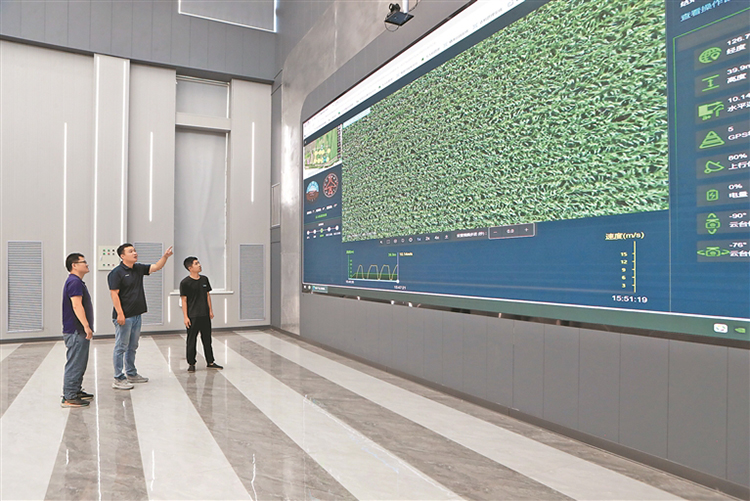 技術(shù)人員在數(shù)字農(nóng)業(yè)指揮大廳分析作物長勢(shì)。任忠良攝
