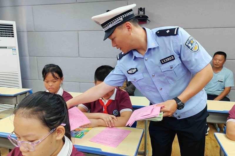 活動(dòng)中,大隊(duì)宣傳民警結(jié)合轄區(qū)交通安全形勢(shì)與學(xué)生日常出行等特點(diǎn),通過播放安全出行警示教育片、現(xiàn)場講解、發(fā)放宣傳手冊(cè)等形式向同學(xué)們普及交通安全法律法規(guī)知識(shí),以及如何安全乘車、安全步行、安全騎車等內(nèi)容,并以互動(dòng)交流的方式為在場學(xué)生們講解交通安全標(biāo)志標(biāo)識(shí),交通出行中不系安全帶、不佩戴安全頭盔、闖紅燈、在馬路上嬉戲打鬧、亂穿馬路或翻越交通隔離護(hù)欄等違法行為的危害性,教育學(xué)生要自覺遵守道路交通法律法規(guī),騎乘電動(dòng)車時(shí)應(yīng)佩戴好安全頭盔、乘坐汽車時(shí)系好安全帶,堅(jiān)決杜絕不文明交通行為和交通陋習(xí),自覺養(yǎng)成文明交通的良好習(xí)慣,爭做道路交通安全的倡導(dǎo)者、踐行者與宣傳者,真正做到安全文明出行。