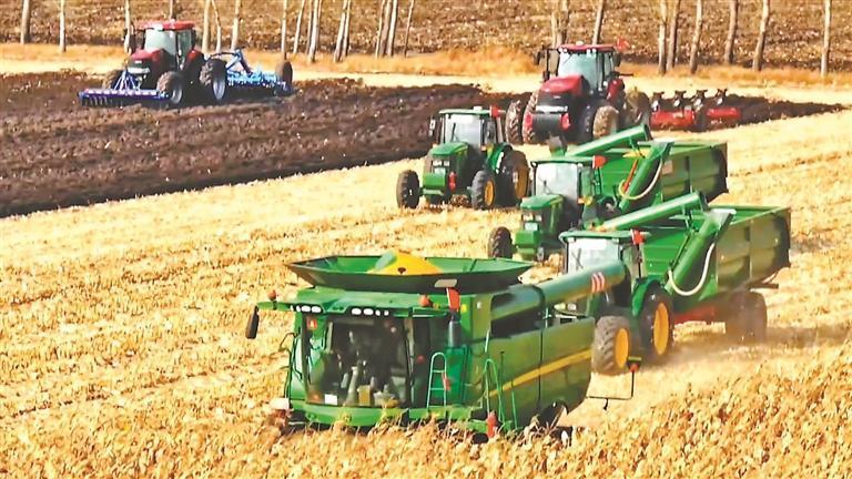 據(jù)統(tǒng)計,北林區(qū)130萬畝耕地實現(xiàn)全程或半程托管服務(wù),讓小農(nóng)戶搭上現(xiàn)代農(nóng)業(yè)的“快車”。通過墾地合作,與省農(nóng)科院簽訂戰(zhàn)略合作協(xié)議,讓科研成果扎根田間,為糧食生產(chǎn)注入源源不斷的新活力,合作地塊玉米、大豆產(chǎn)量比其他地塊增產(chǎn)10%以上。同時,北林區(qū)堅持增產(chǎn)與減損并重,加大智能農(nóng)機配套應(yīng)用,精收細收,節(jié)糧降損。三大作物機械化收獲率達100%,通過減損相當(dāng)于增產(chǎn)糧食0.15億斤。