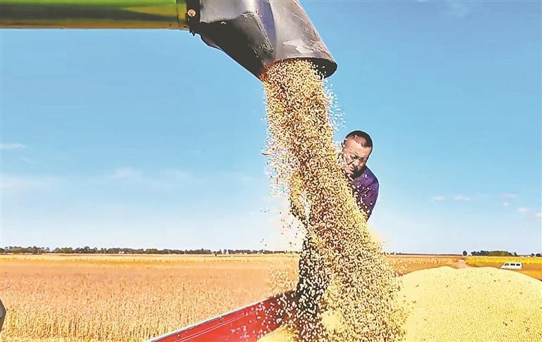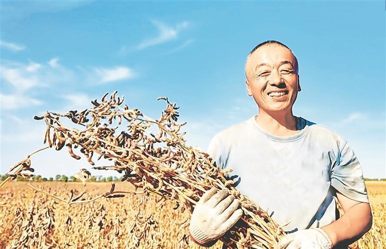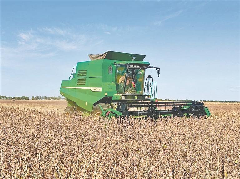 國慶假日,豐收時節(jié)。秋風拂過寶清縣青原鎮(zhèn)的田野,連片的大豆田泛起金黃浪涌,飽滿的豆莢壓彎豆稈,收割機轟鳴作業(yè),農(nóng)戶們忙著分揀、裝袋,豐收的喜悅在田間地頭蔓延。