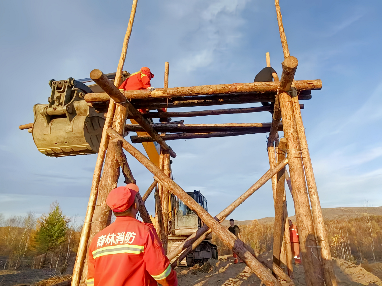 新林林業(yè)局工作人員在搭建臨時(shí)鳥類觀測平臺(耿子健 攝)