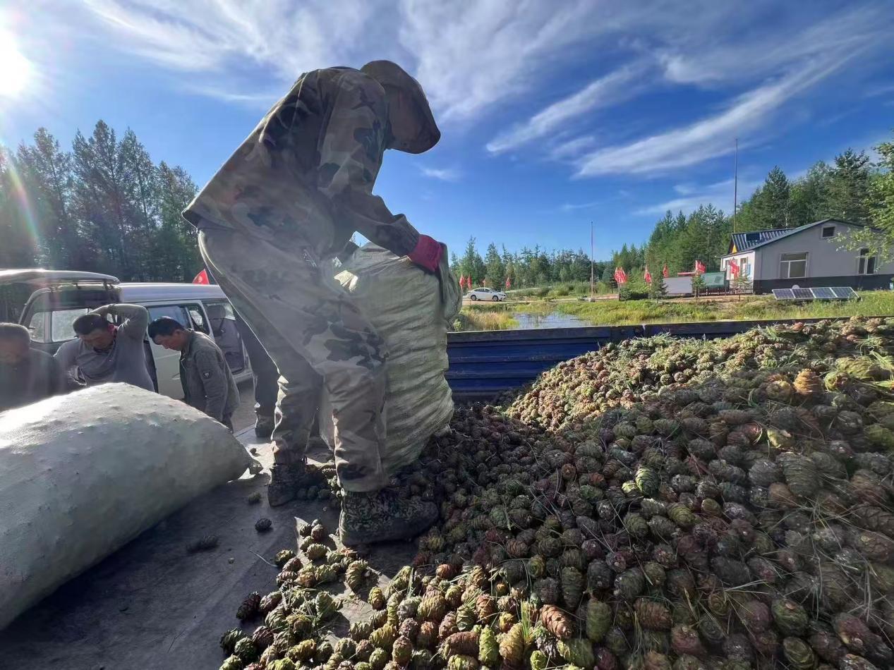 “今年,我利用業(yè)余時(shí)間上山采藍(lán)莓、紅豆和偃松塔,每天都能采很多,賣了不少錢!今年價(jià)格也挺好,一共賣了7萬(wàn)多呢!” 林場(chǎng)職工汪大哥笑著說(shuō),臉上洋溢著豐收的喜悅。在山產(chǎn)品采集期,每天清晨天剛蒙蒙亮,職工們就帶著絲袋子、背著水桶、提著采集工具,走進(jìn)山林開啟一天的采集工作。野生藍(lán)莓、紅豆、偃松塔等山貨,在他們熟練的動(dòng)作下紛紛“收入囊中”。
