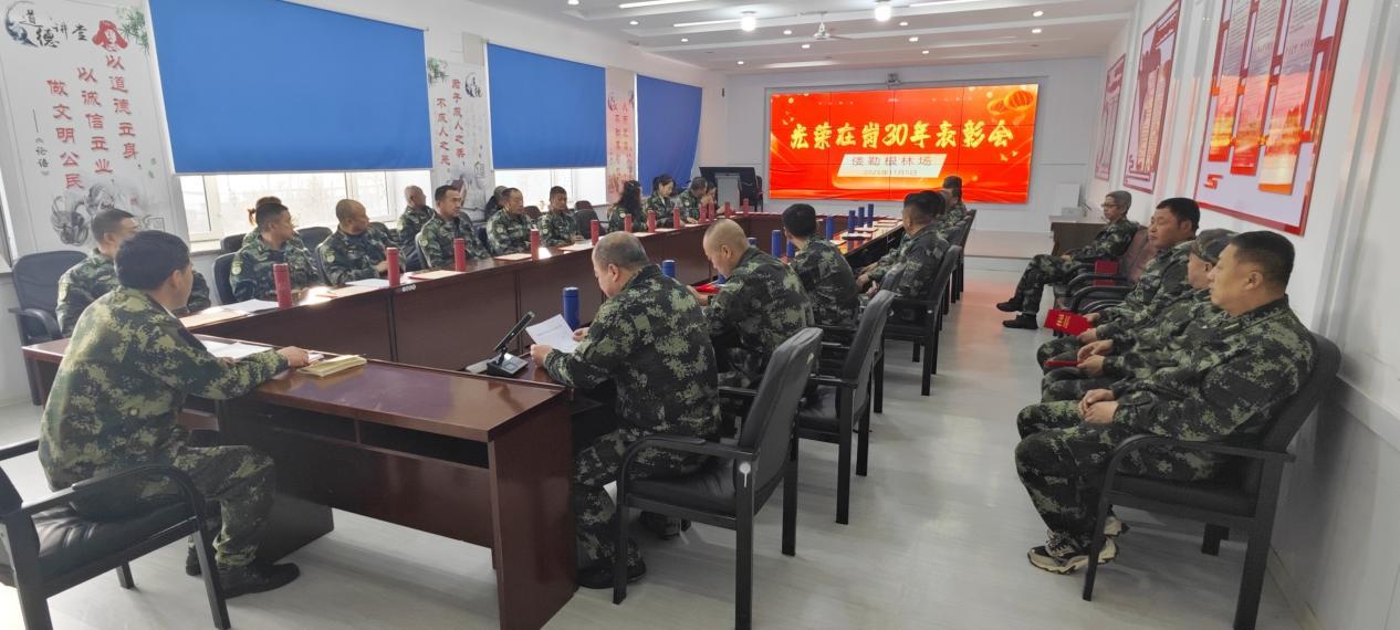 林場(chǎng)班子成員走上臺(tái),與職工們并肩而立,快門(mén)按下,定格了這一幀滿是敬意與溫暖的畫(huà)面。