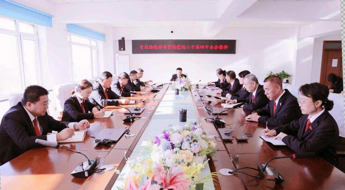 黑龍江經(jīng)濟網(wǎng)訊(董慧瑩 王寶)近日,青岡縣人民法院召開黨組(擴大)會議,傳達學習黨的二十屆四中全會精神,研究貫徹落實舉措。黨組書記、院長孫長久主持會議并講話。黨組班子成員、各部門負責人參加會議。
